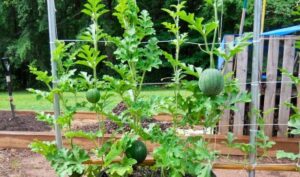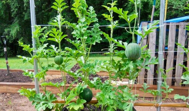 Askıda Karpuz Yetiştiriciliği. Bitkilerin ışıklanma durumlarını iyileştirmek, bakım işlerini kolaylaştırmak, hastalık ve zararlıların kontrolünü sağlamak, bitkiler arasındaki hava hareketini kolaylaştırmak ve sonuçta verimle birlikte kaliteyi artırmak amacıyla bitkileri askıya almak gerekmektedir. Askıya almak amacıyla bitki sıralarına paralel olarak zeminden itibaren 10-15 cm yükseklikten ince inşaat teli, buna paralel olarak 2 m yükseklikten 3 mm’lik galvanizli tel çekilmektedir.